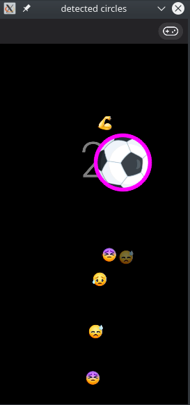 On Facebook Messenger, there’s a game you can play where you have to keep a soccer ball up in the air by tapping it. Every time you tap it, your score goes up by one. The soccer ball experiences gravity and will get an upward force when you tap it. I wanted to see whether OpenCV could help me winning this game.